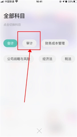 2、点击切换标识后,选择审计选项,即可完成切换至审计学习模式的操作。