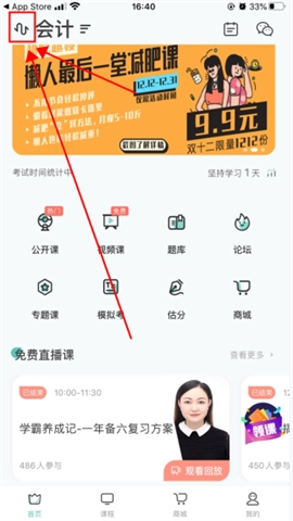 1. 开启会计随身学,进入首页,在页面上方寻觅并点击切换符号。