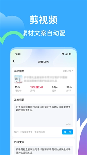 天天速剪,一款专业且好用的带货视频剪辑制作软件。它具备专属的高清商用素材库,借助强大的AI技术,能依据视频内容自动生成优质文案。不仅如此,天天速剪还提供大量丰富的视频模板,让你一键就能快速制作出同款作品,并且能针对不同平台,智能调整视频的画幅、码率以及时长。有需求的小伙伴,快来试试天天速剪吧!
