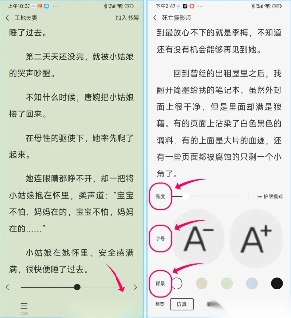 3. 当您进入小说阅读页面后,便能够开展个性化设置。