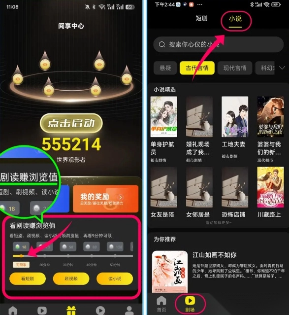 1. 任务体系全新升级:实现跨场景任务整合,精心打造“看短剧、刷视频、读小说”任务一体化矩阵,此矩阵下三者统一计时并给予奖励。