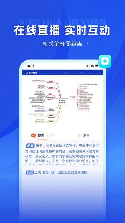2、专业直播:在线直播课功能先进,参与实时互动。
