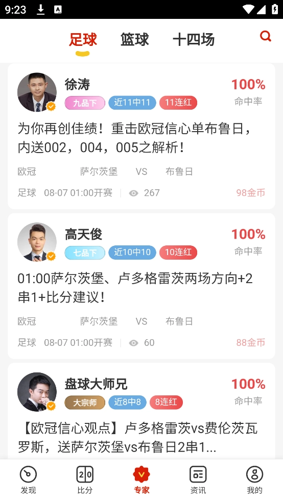 央视主持人、国足运动员等知名人士会不定期进行免费的比赛解读,同时核心数据情报也能随时查看。