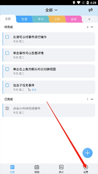 可以设置单日、跨天;设置具体事件点、任务时间段、全天的时间日程。
