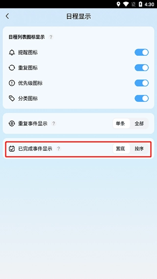 3、在已完成事件显示的后面,选择置底操作就可以了。