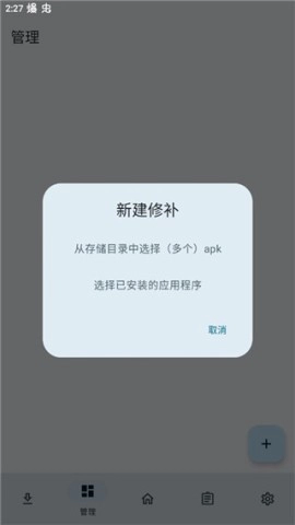 1. 开启软件,进入管理功能页面,点击右下角的“+”号。