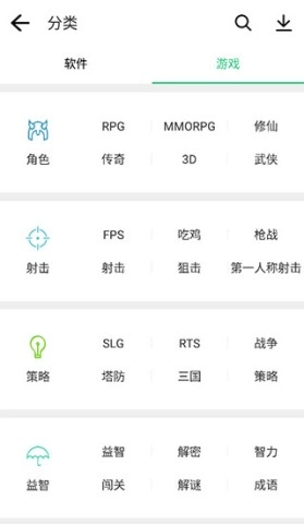 2. 轻点“游戏”选项,依据类型进行筛选,精确寻得你钟爱的软件作品。