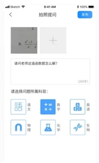 2、用户能够通过拍照上传自身所遇难题来提问。