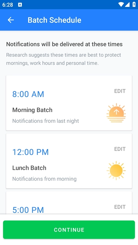 1、灵活的批次时间:选择您想要收到通知的当天时间。保护您的工作,睡眠和个人时间!
