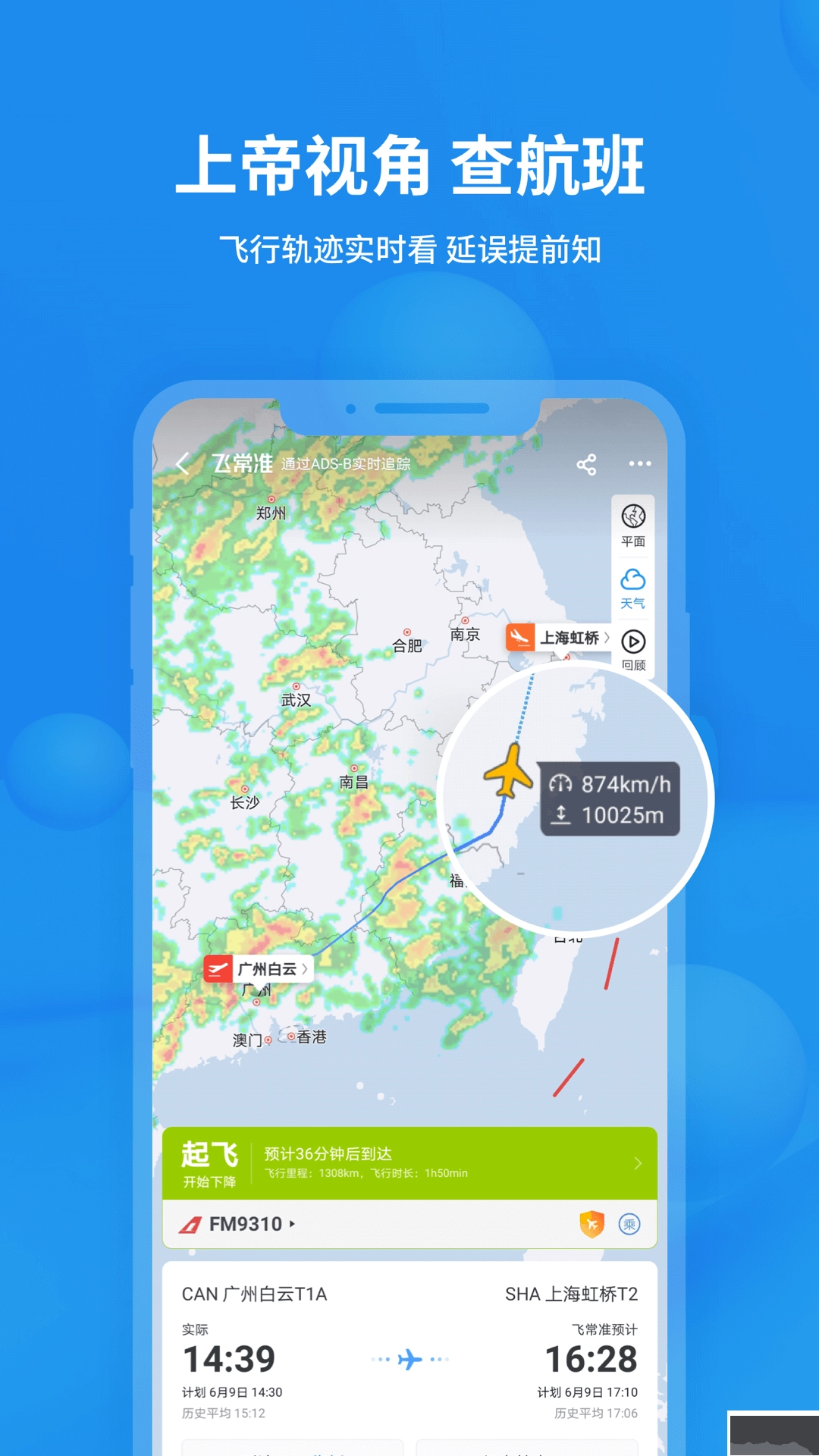 9.打开设备进入任何主要机场的抵港及离港板并获得飞行加上目前机场的天气状况的实时状态更新(应用程序内购买)