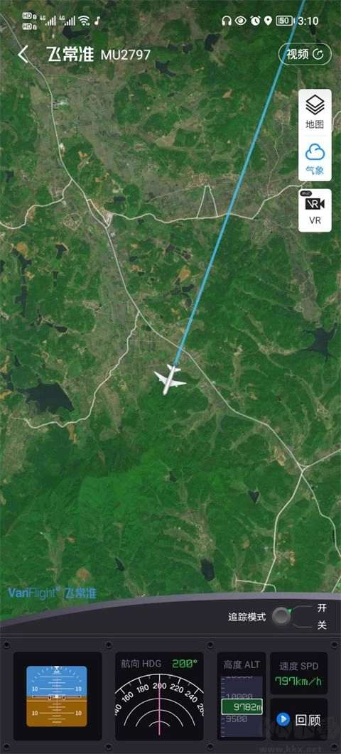 3、可以看到该飞机的详细信息,点击右上方的追踪功能。