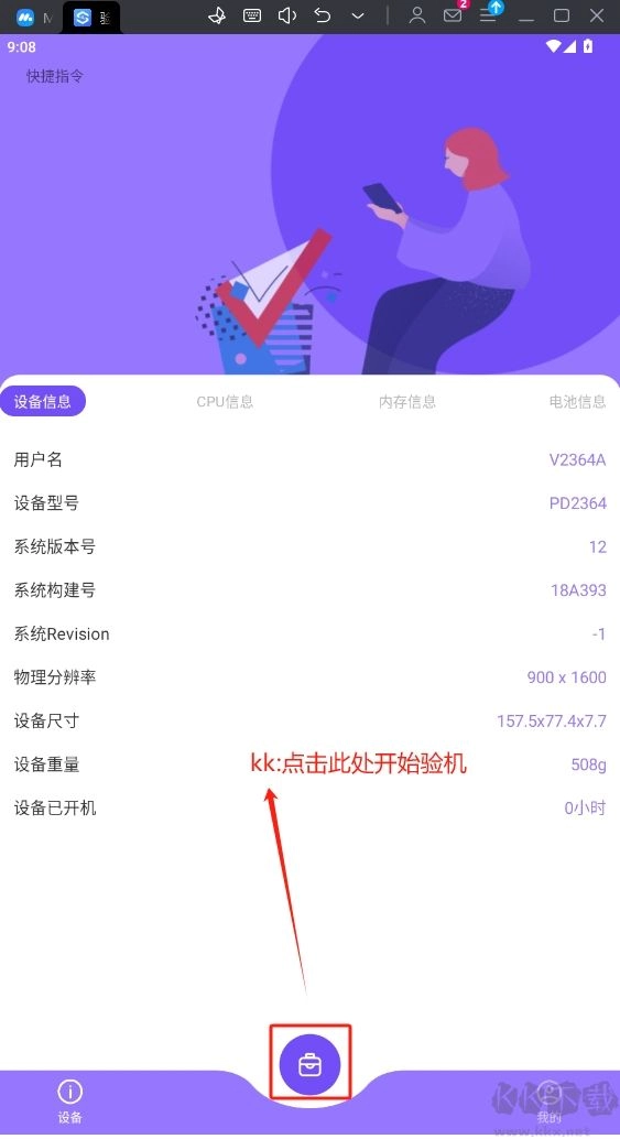 2.点击屏幕正中间的按钮即可开始检测手机