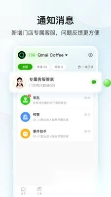 3、订单管理:到账极速播报,外卖自动接单,支持微信/支付宝小程序订单,买单/预约单一目了然,快速处理订单