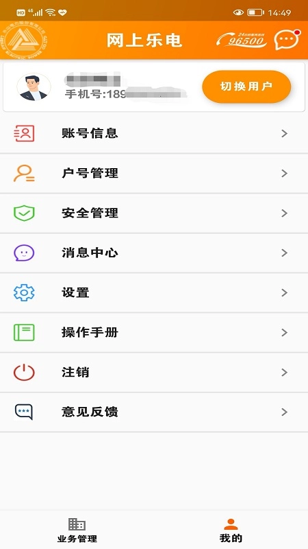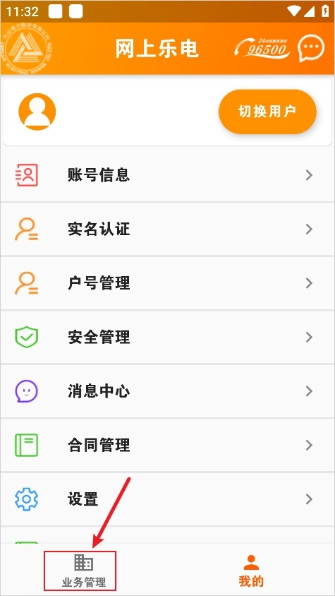 1. 开启网上乐电,接着点击下方的业务管理。