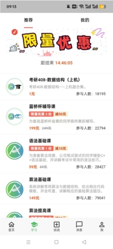 3、在【学习】版块中,有许多不同类型的课程学习,大家可依据实际学习需求去选择,不过这些都需要支付一定的费用。