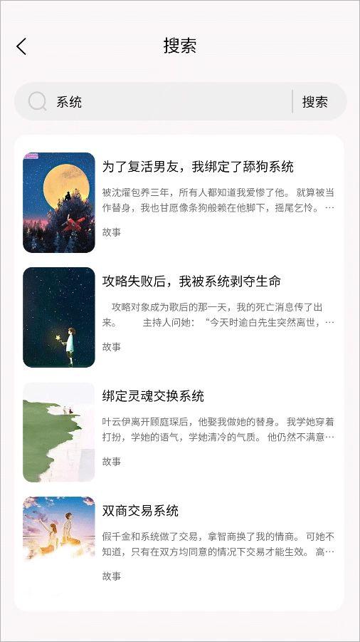 4、强大的搜索功能能随时依据您的特定需求完成操作,各类精彩的小说内容,满足您对震撼感的期待,为您带来十足震撼。