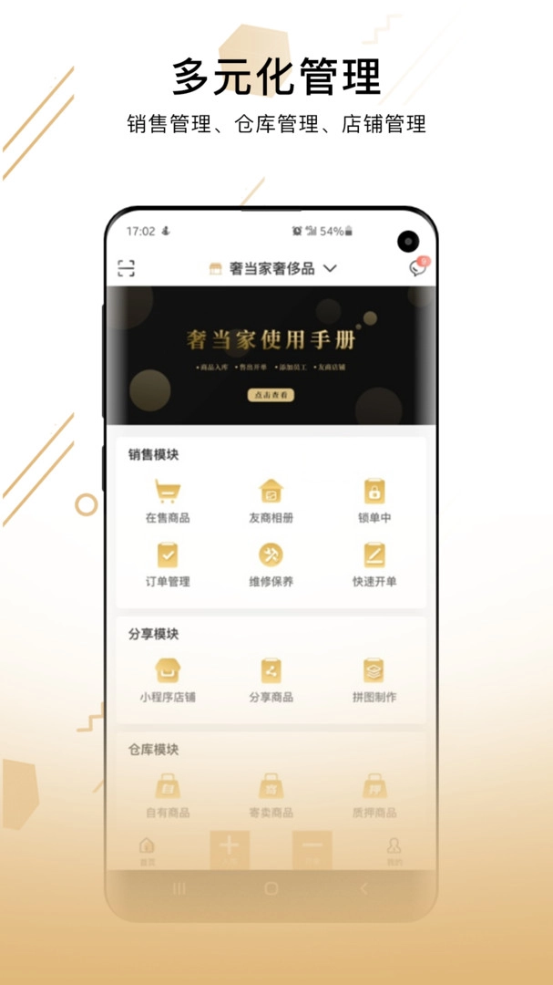 奢当家,是专为奢侈品店铺经营管理量身打造的服务软件。它具备丰富多样的管理功能,涵盖销售管理、仓库管理、店铺管理以及员工管理等方面,为奢侈品店铺的整体运营给予了强有力的支持,不仅显著提升了工作效率,还使店铺的营销水平得以相应提高。倘若你想要查询店铺内商品的历史价格、销售数据等各类信息,都能获得智能化的统计与分析。有需求的朋友们,赶紧来了解一下吧!