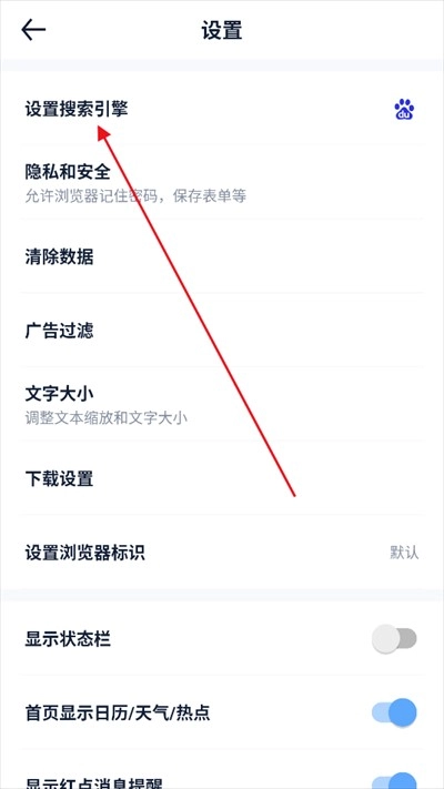 4、轻点设置搜索引擎