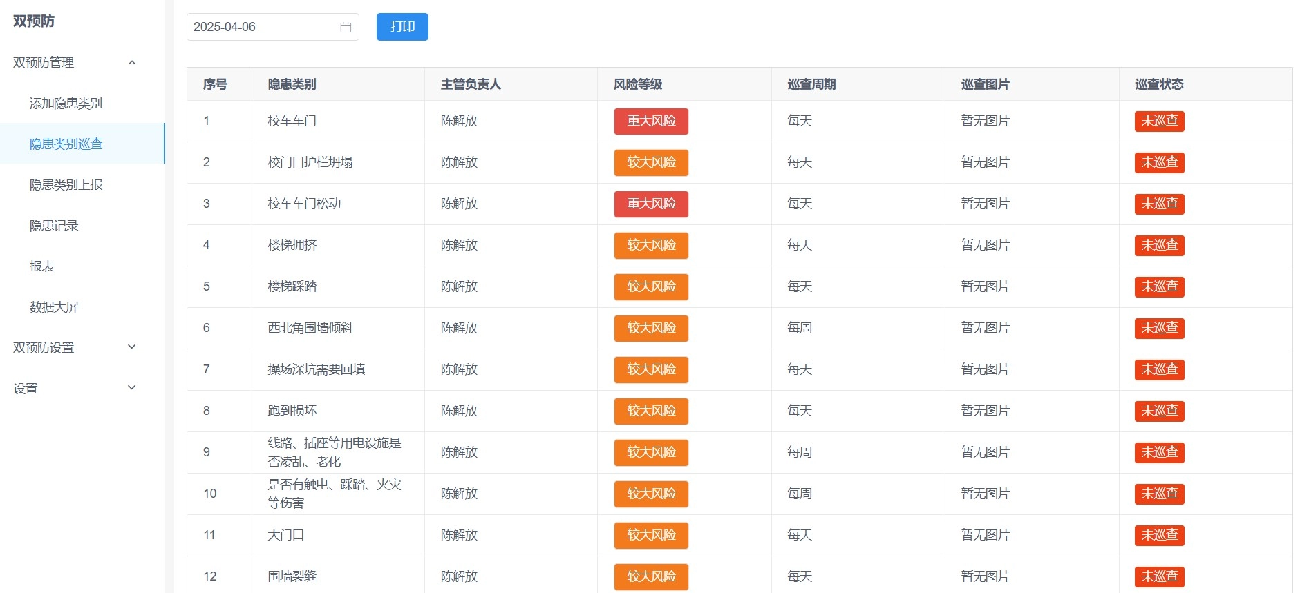 u200c1、隐患管理u200c:添加隐患类别u200c,用户可以根据实际需要添加不同的隐患类别,如围墙安全、操场安全、教室用电安全等。