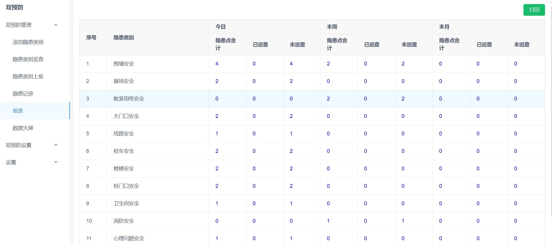 双预防管理系统旨在帮助用户更有效地识别和管控各类隐患,通过科学的分类和管理,降低安全风险。教师可以在教师端进行双预防巡查、双预防上报和双预防数据统计。