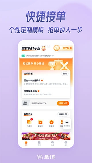 2、订单模板:为您筛选海量肥单,以及众多代练陪练需求,完成验收即刻通过。