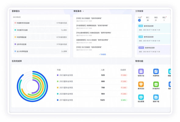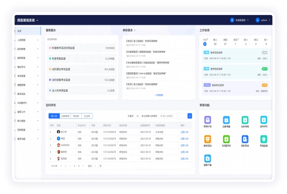 远秋专科医师规范化培训系统依据国家专科医师培训大纲精心打造,功能全面,覆盖学员报到、培训安排、出入科、考试考核、轮转手册管理、360评价、教学活动以及考勤管理等多个环节。该系统已在国内众多专科医师规范化培训基地历经多年广泛应用,其功能的全面性、稳定性与实用性,获得了一致认可与好评。