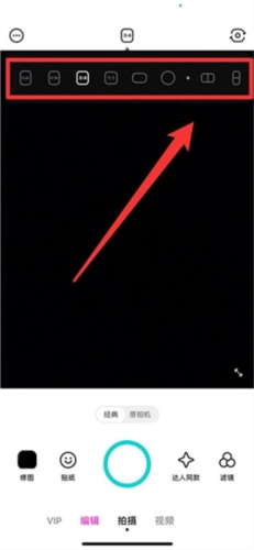 2、点开,可以选择拍摄比例,右滑就出现很了多拼图效果。