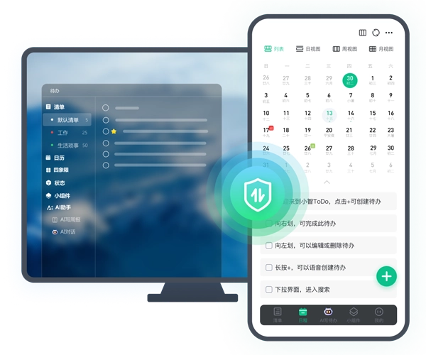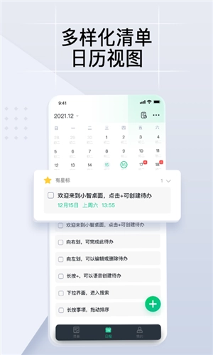 小智ToDo是深圳市常青藤软件科技有限公司推出的生活记录管理工具,主要用于各类办公及日常生活记录。软件界面以白、灰为主色调,点缀着绿色,UI设计清爽简约,使用过程能让用户感受到舒适体验。该应用为用户提供丰富功能,集成了日程清单、日历、计划表、备忘录、便签、闹钟等多种功能,并且还支持与电脑PC端同步设置,让用户享受更多便捷,更有效地管理日常生活。