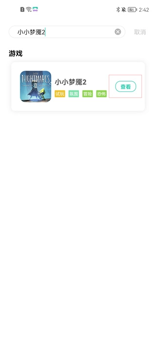 5、如果你想找具体某一款游戏,可以点击右上角的搜索按钮进行关键词搜索。点击查看即可进入游戏详细页面