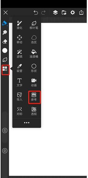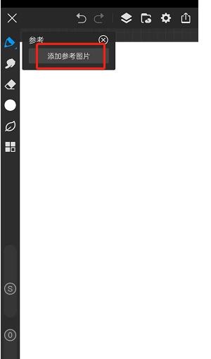 3.点击后画布的左上角会有一个【参考】的小界面,选择【添加参考图片】
