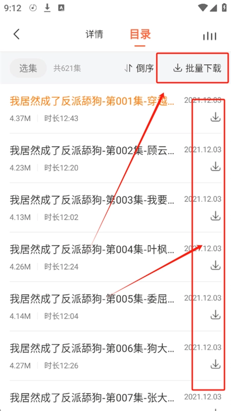 3、接下来在目录页面,挑选自己想听的剧集就行,也能够采用批量的方式。