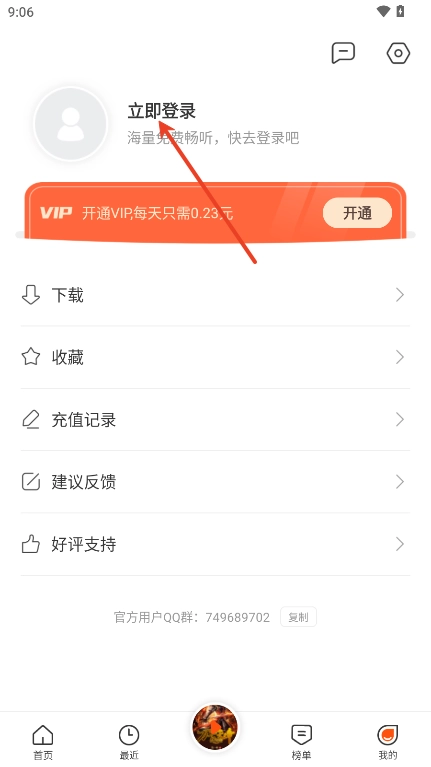 1. 下载并安装良宵听书,安装完成后打开软件的主页。