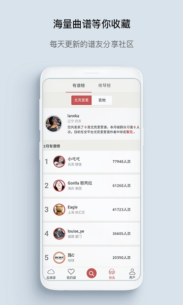 3、用户能够登录账号,将喜欢的曲谱收藏起来,上传个人作品,还能与其他用户交流心得体会。