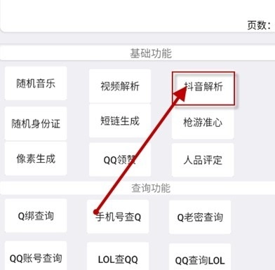 2. 挑选抖音分析功能,点击进入该功能界面。