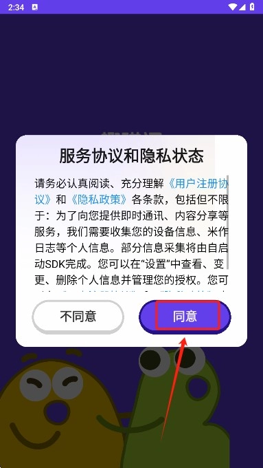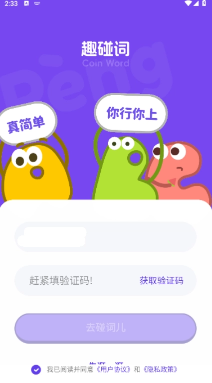 1、打开趣碰词后,阅读并同意相关的隐私权限以继续使用