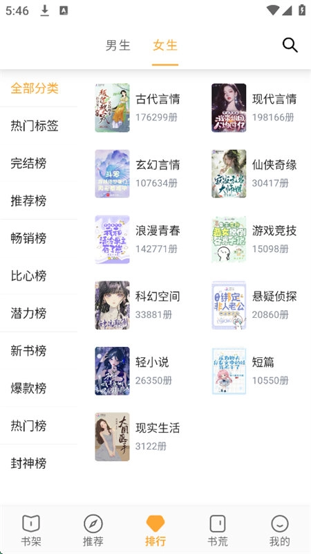 5、切换到排行榜页面,可以随时查看当前最受欢迎的小说榜单
