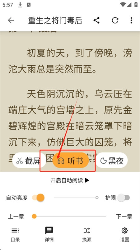 4、贴心的听书功能:要是眼睛感到疲劳,能随时切换至听书模式,持续畅享小说内容。