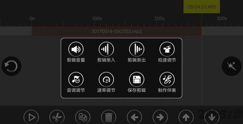 实现变大、降低噪音、缩小、拓展、回音、失帧、延迟时间等功能。你可同时处理多个文件,轻松在几个文件间进行裁剪、粘贴、合并、叠加声音等操作。