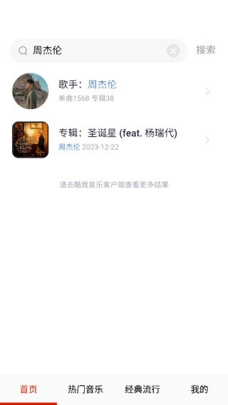 ·名称搜索:可以输入歌曲名称、艺人、专辑等关键词进行搜索,播放轻音乐