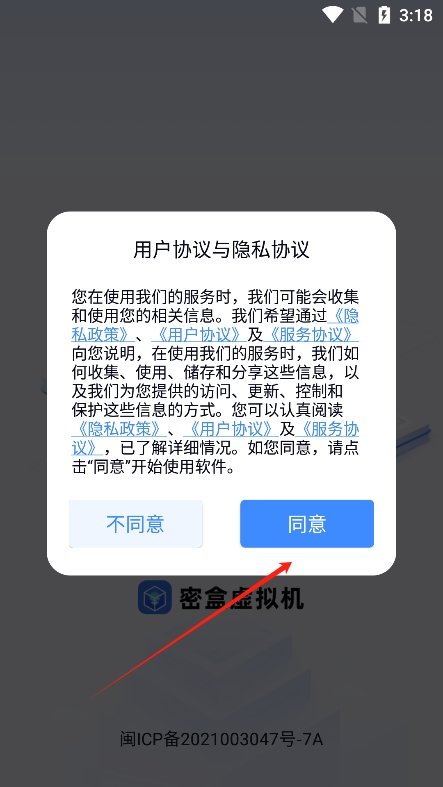 2、打开后,请仔细阅读并理解用户协议,确认无误后点击同意以继续。