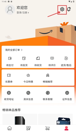 1. 开启亚马逊海外购应用程序,轻点底部的“我的”选项,从而进入个人中心页面。