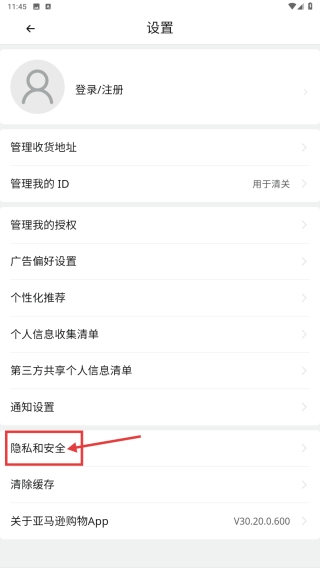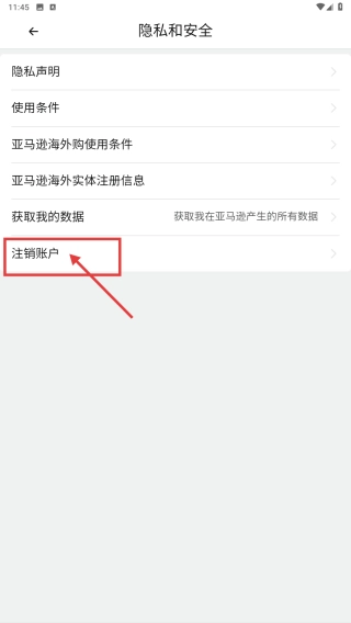 4、进入隐私和安全页面,找到并点击注销账户选项,从而发起账户注销操作。