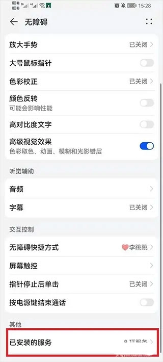 2、然后打开在无障碍功能中最下方的功能【已安装的应用】进入到其中。
