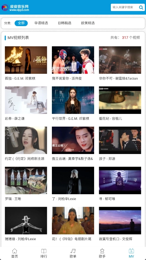 1. 打开软件,点击底部的“MV”选项,就能查看众多视频列表。