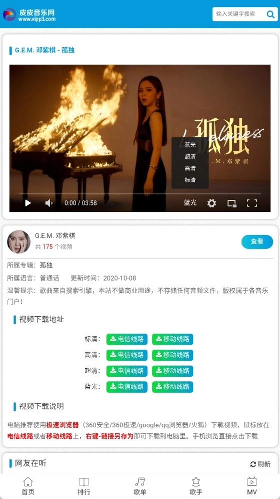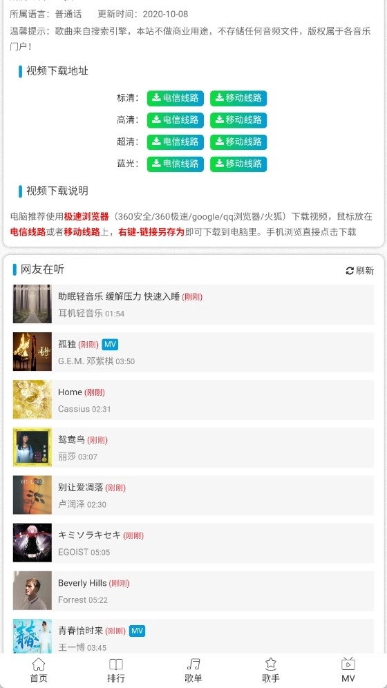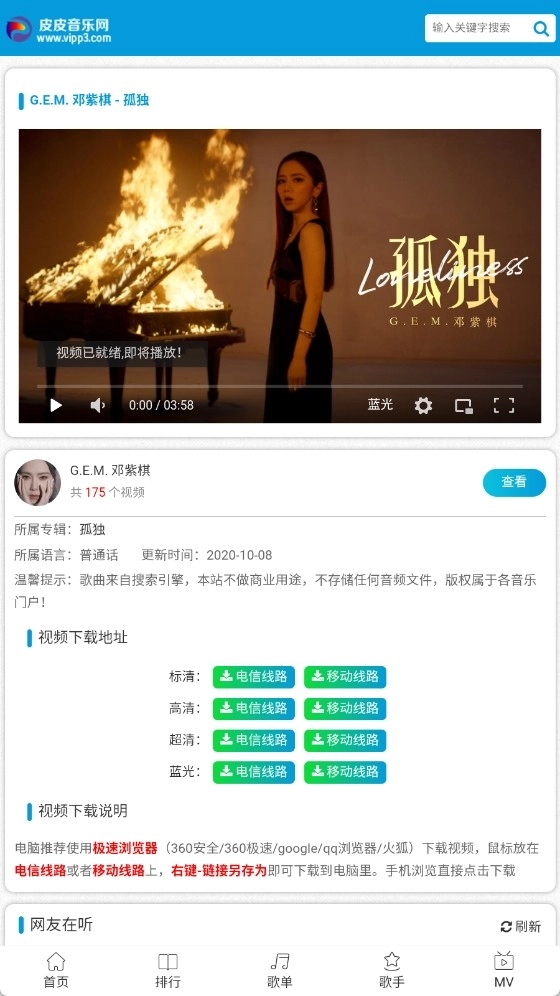 5、下滑屏幕,还能将喜爱的MV视频保存哦。