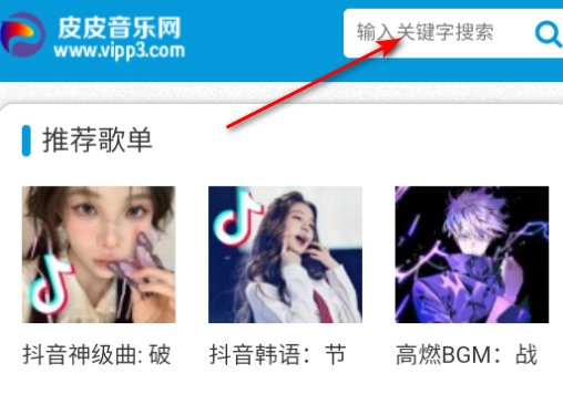 1. 打开皮皮音乐网软件,点击页面上方的搜索按钮。