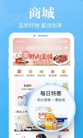 1、【商城】零食饮料、中外名酒、智能家电、优选母婴等高品质商品琳琅满目,一键下单当日送达。