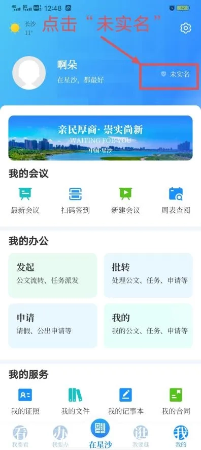 1.打开在星沙App,进入应用点击右上角【我的】-【点击登录】