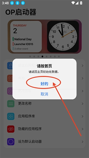 3、然后点击好的,将启动器OS15设置为默认值即可。