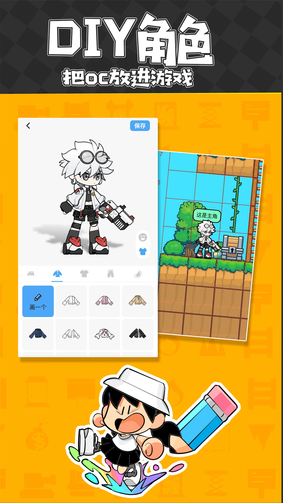 仅需简单几步,绘制好的角色就能动起来;不管是音乐、场景,还是机关、武器、人物,都能依照你的想象创作出来。